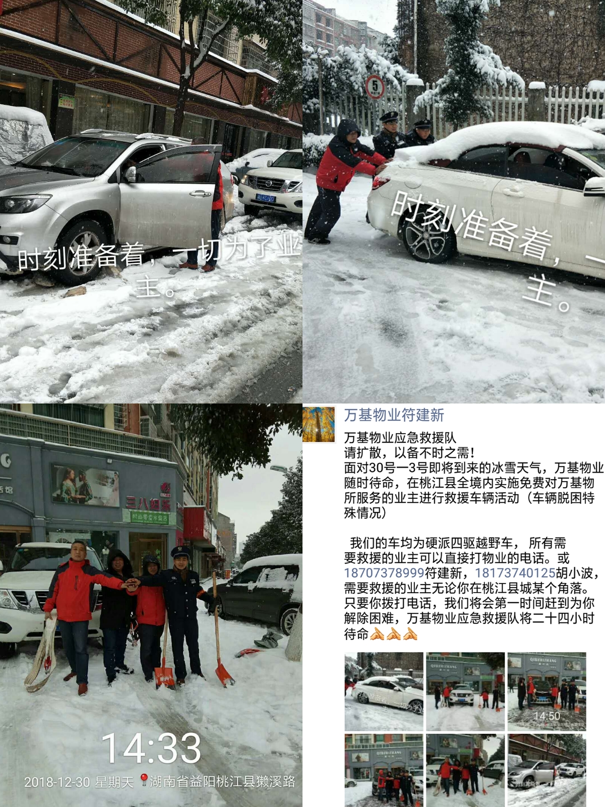 辞旧迎接之际,桃江县城迎来了许多人翘首以盼的一场大雪,银妆素裹,份外美丽,可对于我们物业人来说,雪景虽美,但安全隐患多多,于是温馨提示轮翻提醒着,应急救援时刻在准备着,铲雪除冰持续进行着。。。